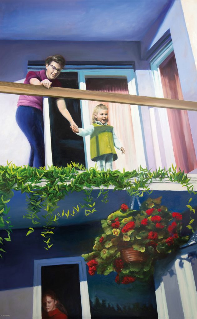 En plus des peintures de la « miniature series » et de ses grands portraits, toutes en noir-et-blanc, Gerda Van Damme intègre aussi des peintures en couleur – en général de format intermédiaire – dans son projet.
